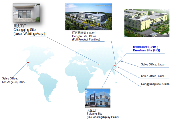 思瑞奕電子有限公司成立于2010年10月,注冊資金7500萬人民幣,總部位于江蘇省昆山市,在重慶、江蘇東臺、江蘇太倉設(shè)有分廠,公司于2011年通過ISO9001/ISO14001認(rèn)證,2013年通過高新技術(shù)企業(yè)和TS16949(IATF)體系認(rèn)定,2016年先后通過知識產(chǎn)權(quán)管理體系認(rèn)證、安全生產(chǎn)標(biāo)準(zhǔn)化認(rèn)證,2017年獲頒江蘇省民營科技企業(yè)、2018年先后獲得蘇州市人民政府認(rèn)定企業(yè)技術(shù)中心、科技部認(rèn)定中小型科技企業(yè)、江蘇省最具成長性高科技企業(yè)、2020年獲得江蘇省人民政府認(rèn)定企業(yè)技術(shù)中心、2021年獲得蘇州市瞪羚計劃入庫企業(yè)、江蘇省省級工程技術(shù)研究中心、江蘇省專精特新中小企業(yè)等榮譽稱號......